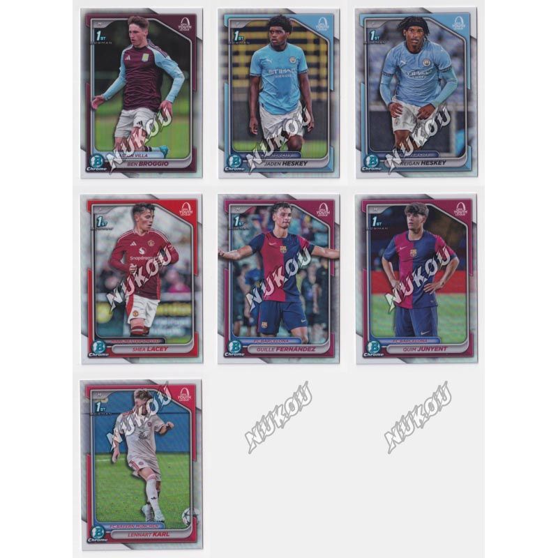 2024-2025 2024-25 2024/2025 2024/25 Topps Chrome UEFA Club Competitions Champions Europa Conference League UEFACC UCC UEFACL UCL UEFAEL UEL UEFAECL UECL Football Soccer Trading Card Collection ToppsChrome欧战欧冠欧联欧协联 欧战Chrome欧冠Chrome 欧足联欧洲冠军联赛 欧足联欧洲联赛 欧足联欧洲协会联赛 欧洲冠军杯 欧联杯 欧会杯足球球星卡 SET 7 CARDS 特卡套卡7张 Bowman UEFA Youth League Insert 欧洲青年联赛特卡 1st Bowman 本布罗焦 Benjamin Tomaso Broggio/杰登 赫斯基 Jaden Heskey/雷甘 赫斯基 Reigan Heskey/谢伊 莱西 Shea Lacey/吉耶 费尔南德斯 Guillermo Fernandez Casino/奎姆 基姆 胡尼恩特 朱尼恩特 Quim Junyent Casanova/莱纳特 伦纳特 卡尔 Lennart Karl 阿斯顿维拉 Aston Villa/曼城 曼彻斯特城 曼切斯特城 Manchester City FC F.C./曼联 曼彻斯特联 曼切斯特联 Manchester United FC F.C./巴塞罗那 巴萨 F.C. FC Barcelona/拜仁慕尼黑 F.C. FC Bayern Munich Munchen #BU-BB/#BU-JH/#BU-RH/#BU-SL/#BU-GF/#BU-QJ/#BU-LK 发布相似商品