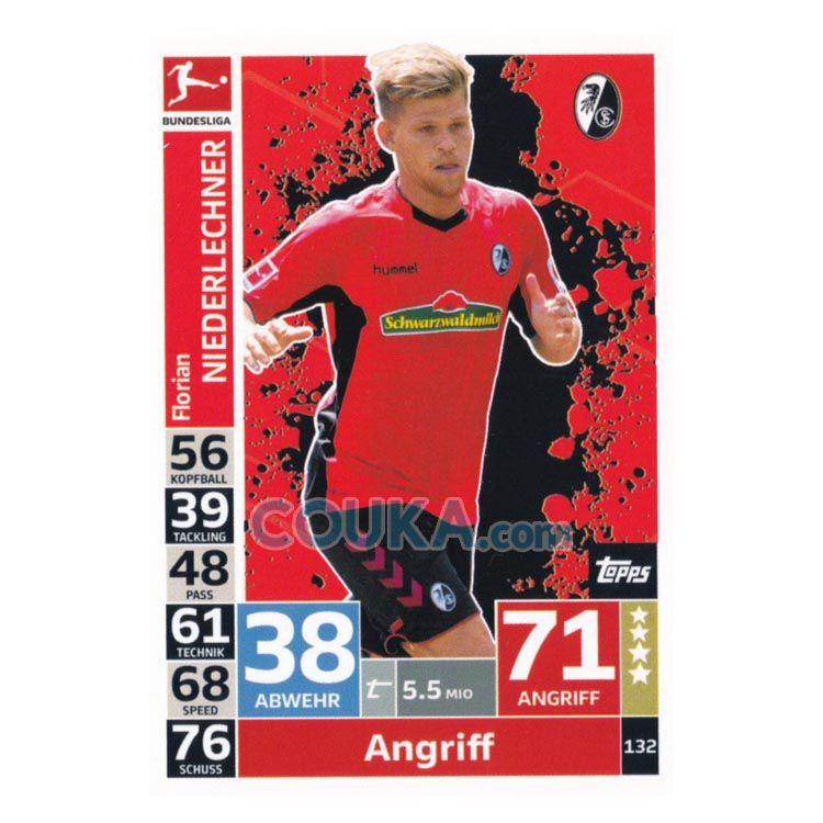2018-2019 Topps German Fussball Bundesliga Match Attax Football Soccer Card #132 Florian Niederlechner Base Freiburg德甲球星卡 尼德莱赫纳 普卡 弗赖堡