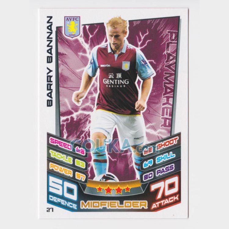 2012-2013 Topps EPL English Premier League Match Attax Football Soccer Card #27 Barry Bannan Base Aston Villa英超球星卡 巴里 班南 普卡 阿斯顿维拉