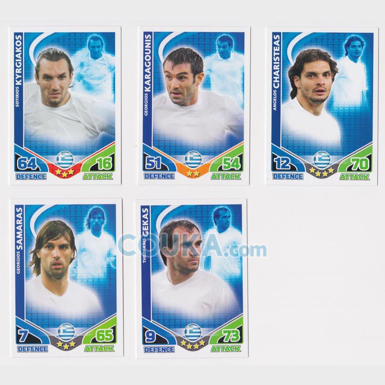 2010 Topps FIFA World Cup England Match Attax Football Soccer Card Base Set Greece 5 CARDS Sotirios Kyrgiakos/Giorgos Karagounis/Angelos Charisteas/Giorgos samaras/Theofanis Gekas Topps世界杯球星卡 希腊 5张 基尔贾科斯/卡拉古尼斯/查理斯特亚斯/萨马拉斯/耶卡斯 发布相似商品