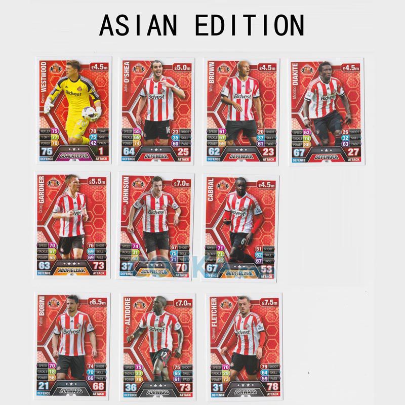 2013-2014 Topps EPL English Premier League Match Attax Asian edition Football Soccer Card BASE SET Sunderland 10 CARDS Keiren Westwood/John O'Shea/Wes Brown/Modibo Diakite/Craig Gardner/Adam Johnson/Cabral/Fabio Borini/Jozy Altidore/Steven Fletcher英超 亚太版球星卡 桑德兰 10张 凯伦 威斯特伍德/奥谢/韦斯 布朗/莫比多 迪亚基特/克莱格 加德纳/亚当 约翰逊/卡布拉尔/法比奥 博里尼/阿尔蒂多雷/弗莱彻 发布相似商品