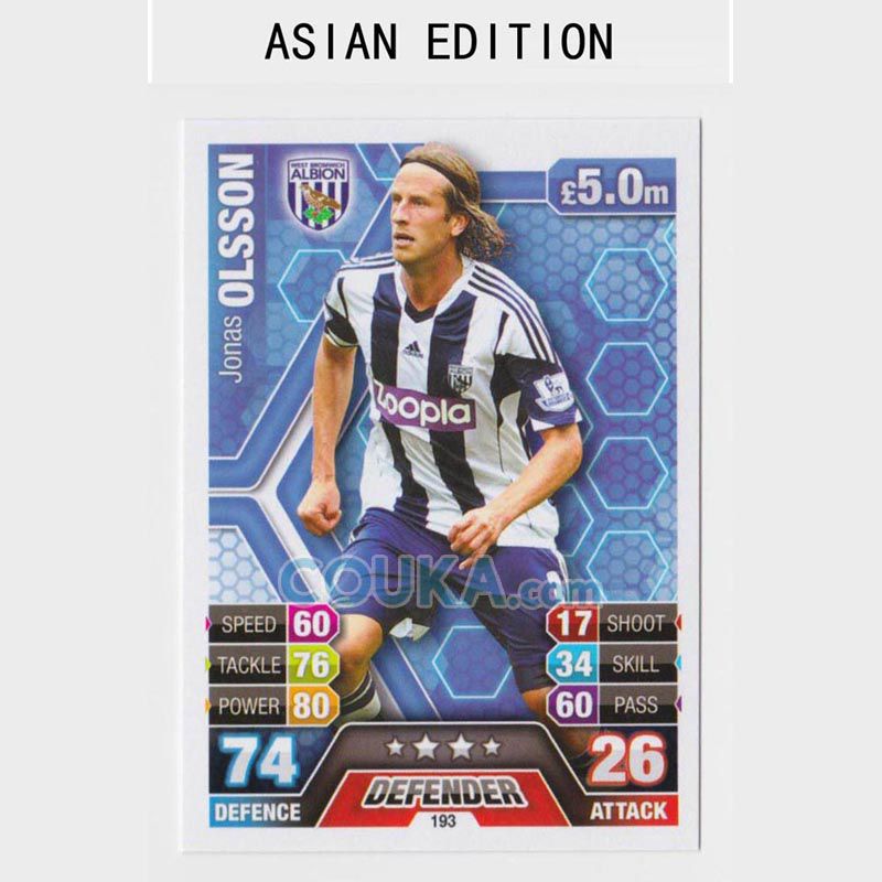 2013-2014 Topps EPL English Premier League Match Attax Asian edition Football Soccer Card #193 Jonas Olsson Base West Bromwich Albion英超 亚太版球星卡 乔纳斯 奥尔森 普卡 西布朗维奇 发布相似商品